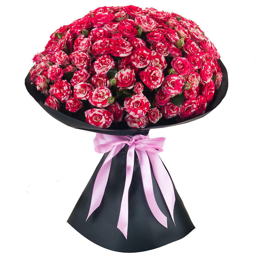 На фото представлен образец. Объем букета зависит от выбранного вами размера. Точное количество цветов и цветовую гамму вы можете уточнить у менеджера по телефону.